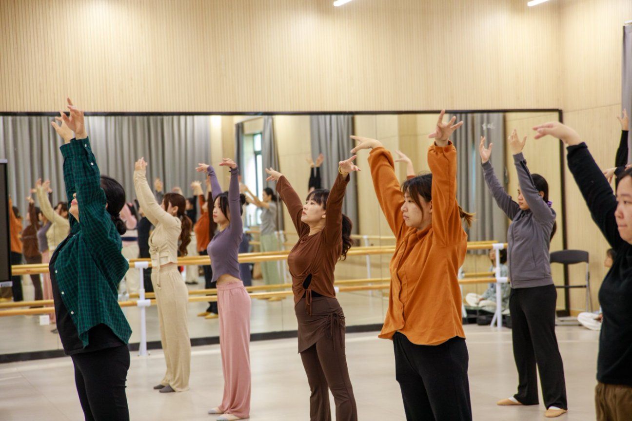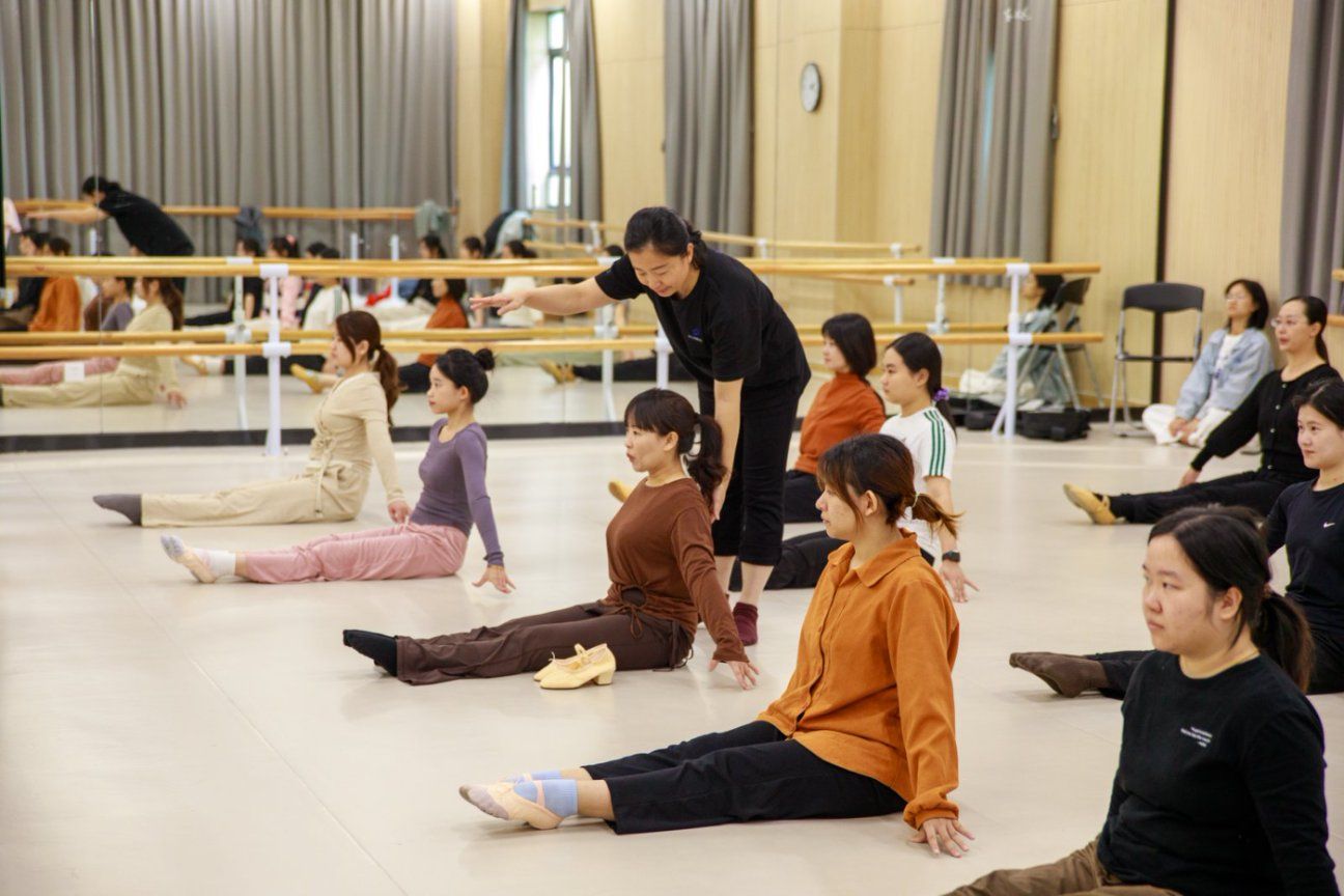 工作坊采用参与式、体验式培训模式,将理论讲解与技能训练紧密结合。参训教师投入于密集的舞蹈练习中,通过反复打磨动作细节、深化对舞蹈教学法的理解。特别设置的“一对一指导”环节。使教师能够获得精准的形态调整建议,从重心控制到线条延伸,从呼吸配合到动作衔接,每一个细节都得到细致关注。