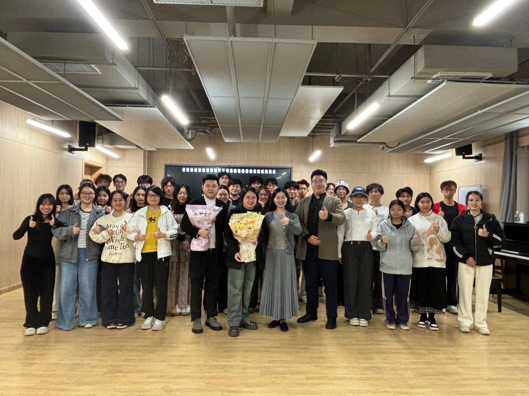 随后,郑老师聚焦当代主流原创歌曲风格,用生动案例拆解 R&B、摇滚、民谣、爵士等核心品类。从碧昂丝、迈克尔・杰克逊的欧美 R&B 经典,到崔健、Beyond 的摇滚精神。郑老师不仅带领大家剖析每种风格的节奏、旋律特点,更强调 “选择有地域代表性、有内容、有个性的音乐” 才是创作的关键。她还分享了自己的创作心得:“聆听内心的声音,创作源于生活”,为师生现场展示《月灯谣》《天上一粒星》《麦朵》等多首原创歌曲,鼓励大家将感动瞬间转化为娓娓道来的故事。