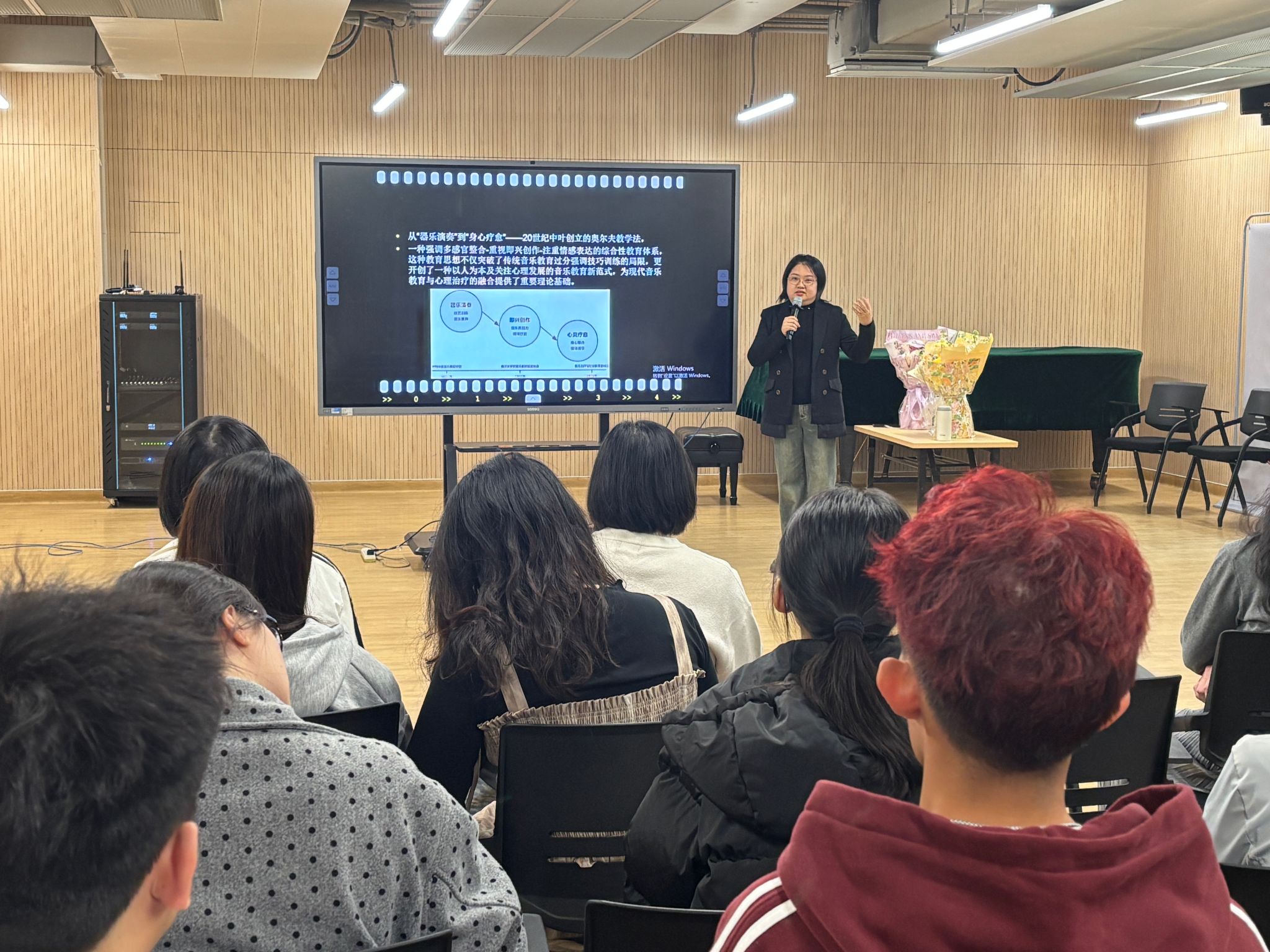 讲座中,郑伊洋老师以 “人类本不需要《命运交响曲》,直到它诞生之后” 的深刻提问开篇,引出音乐在战争年代的精神灯塔作用、疫情时期的治愈力量,以及 AI 时代下艺术创作的独特价值,分享了中国中医科学院的五行音乐软件、中央音乐学院的音乐治疗中心等案例,详解角调、徽调等五声调式对应的情绪疗愈功效,让大家读懂音乐与身心的深层联结;在美学价值上,既追溯庄子 “天人合一”、老子 “大音希声” 的中国古代美学思想,也解读巴赫、贝多芬等西方大师作品中情感与精神的表达,展现中西交融的审美视野。