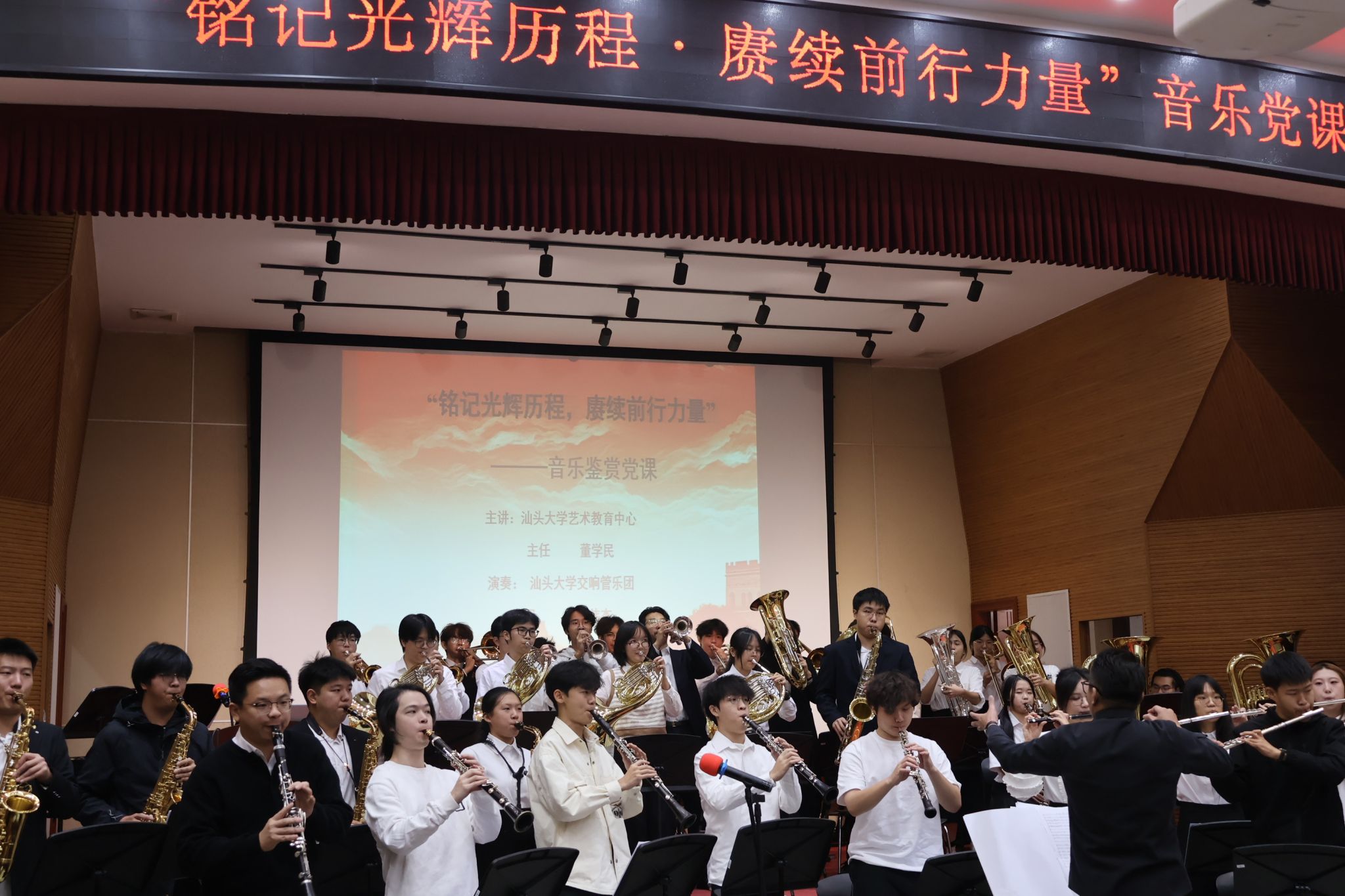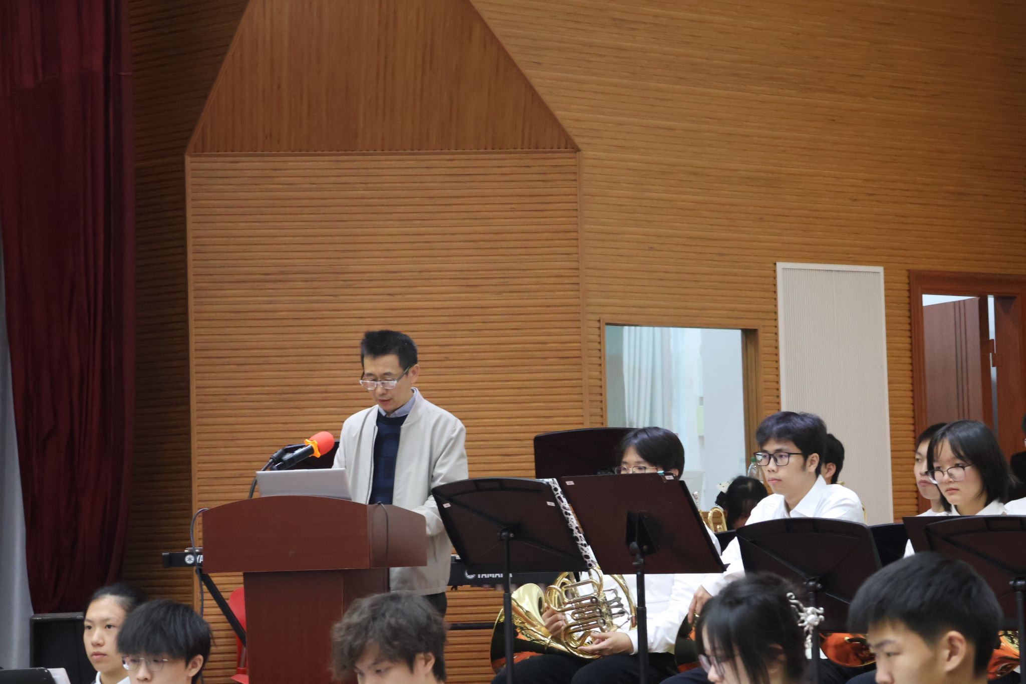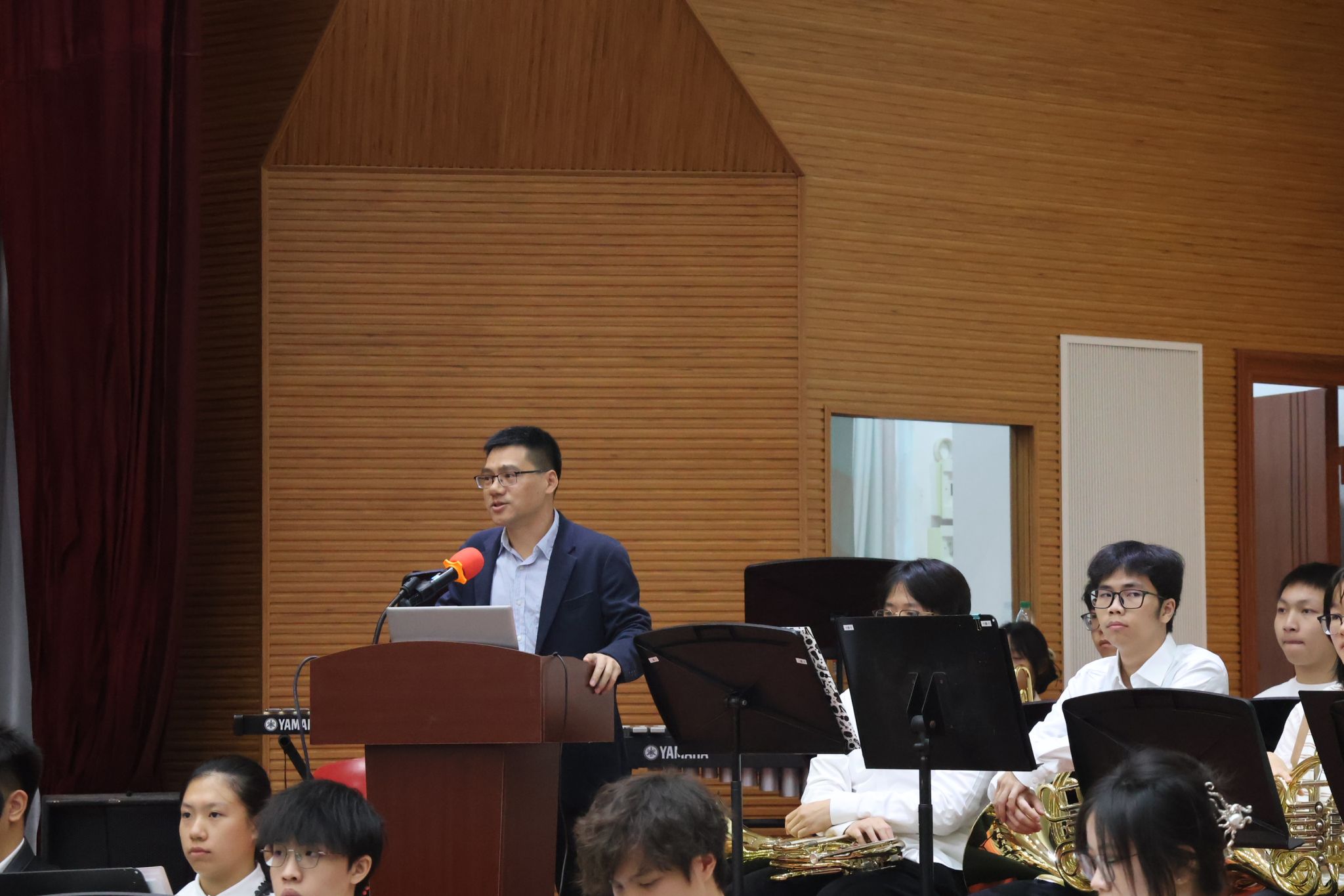 活动伊始,南澳县政协副主席林斯斯致欢迎辞,对各方支持表示感谢,并强调本次音乐党课以红色经典歌曲为载体,通过交响管乐的现场演绎,加强党史学习教育。随后,罗英光同志讲话,高度肯定了汕头大学艺术教育中心在课程策划、节目排练等方面的辛勤付出,并指出音乐党课是新时代加强党性教育、传承红色基因的有效路径。整场党课由汕头大学艺术教育中心董学民教授主讲,林伟杰老师携汕头大学交响管乐团倾情演奏,特邀南澳县云澳中学周丽新老师参与演出,共同呈现了一场高水准、有温度的艺术党课。