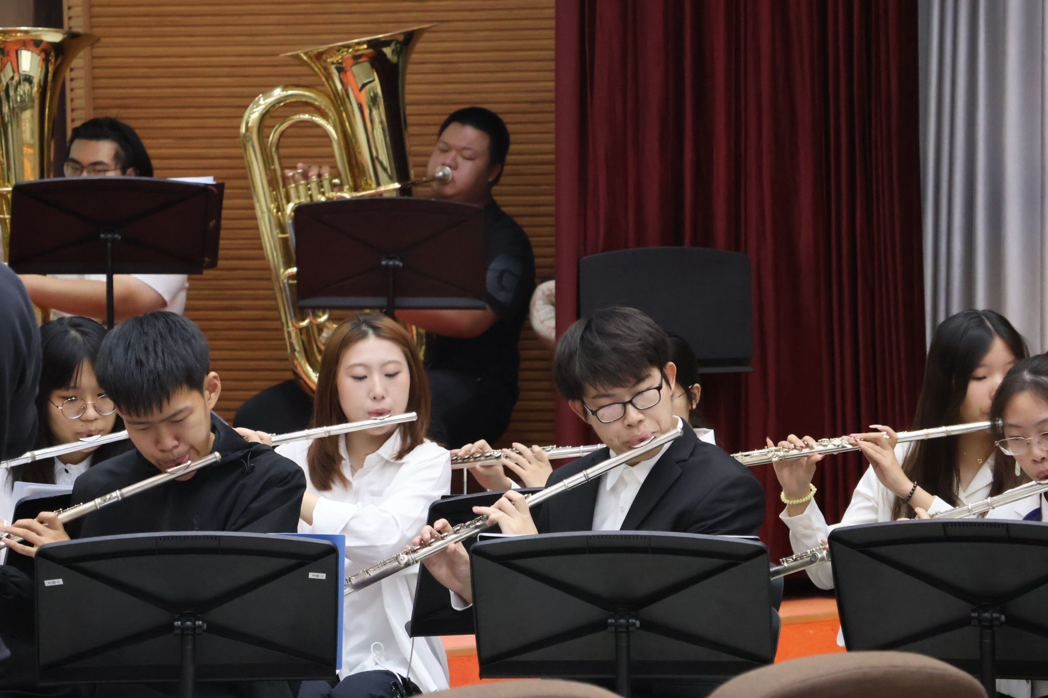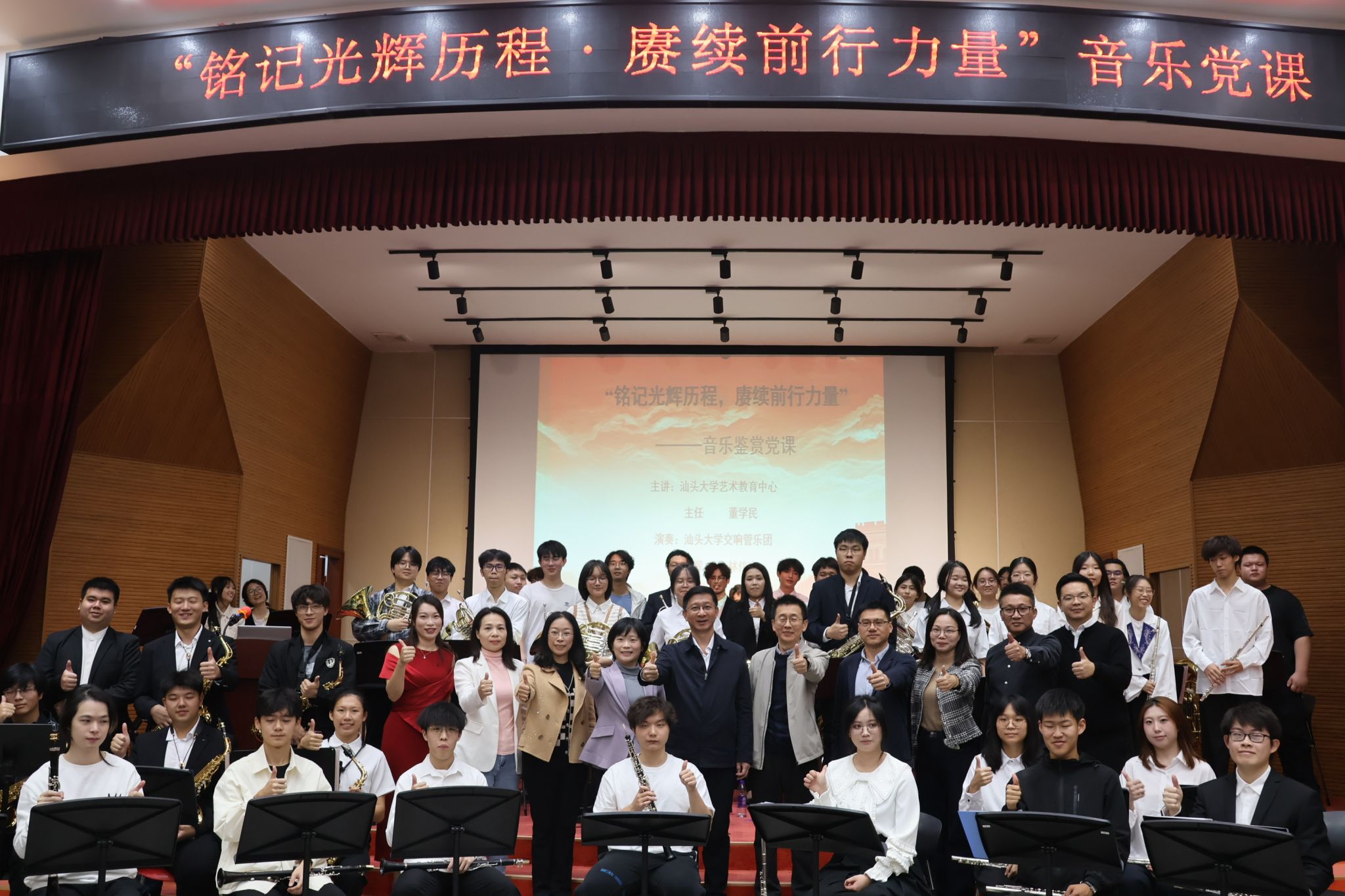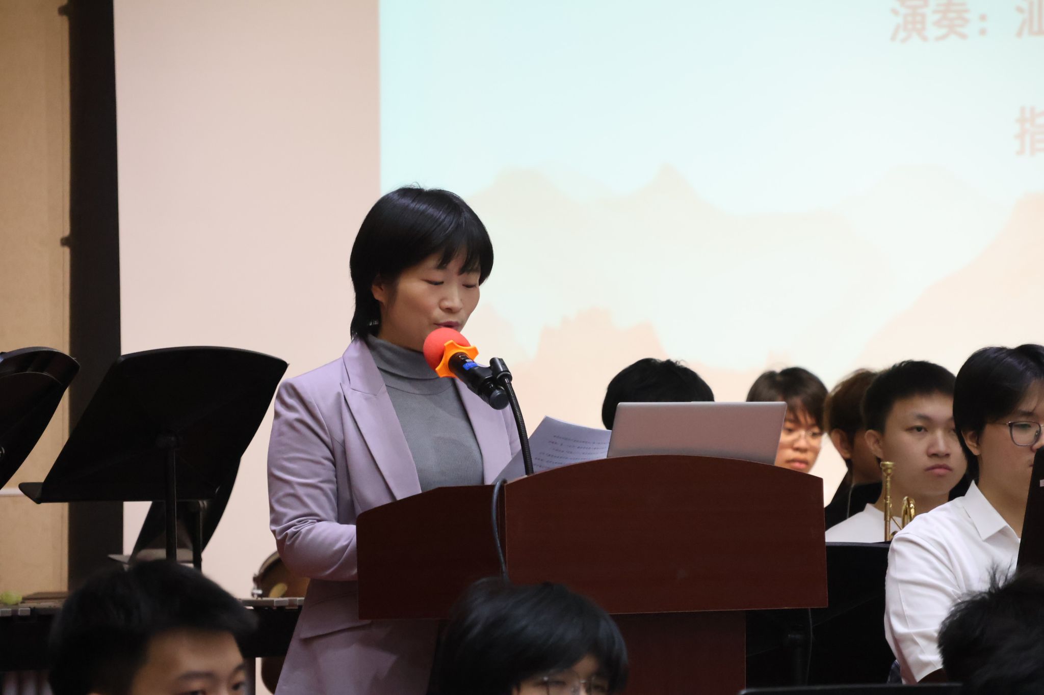 活动伊始,南澳县政协副主席林斯斯致欢迎辞,对各方支持表示感谢,并强调本次音乐党课以红色经典歌曲为载体,通过交响管乐的现场演绎,加强党史学习教育。随后,罗英光同志讲话,高度肯定了汕头大学艺术教育中心在课程策划、节目排练等方面的辛勤付出,并指出音乐党课是新时代加强党性教育、传承红色基因的有效路径。整场党课由汕头大学艺术教育中心董学民教授主讲,林伟杰老师携汕头大学交响管乐团倾情演奏,特邀南澳县云澳中学周丽新老师参与演出,共同呈现了一场高水准、有温度的艺术党课。