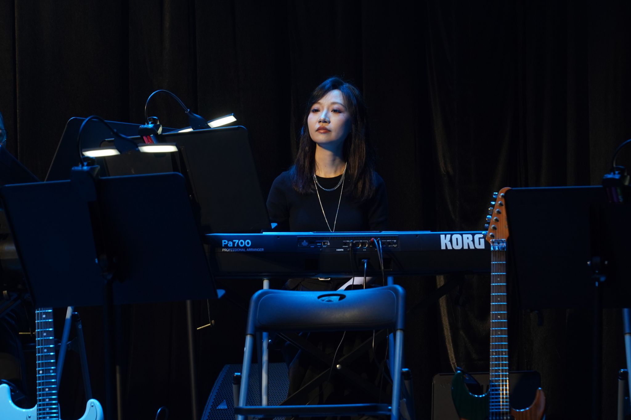 《赤伶》开场,钟火志与钟子妍的戏腔与流行碰撞,郑毅蓁、陈珮琪、欧阳晓东的伴奏为这段跨界演绎注入细腻张力;《花妖》中,刘雨声老师的二胡如泣如诉,将刀郎笔下的故事拉得悠长婉转;《阿爸说》的潮语温情里,三位伴奏的和弦层层递进;《精忠报国》激昂旋律响起,全场跟着钟火志的嗓音齐声高唱,爱国豪情满溢。《大鱼》空灵收尾,钟子妍的歌声与丽可乐队的伴奏交织,台下手机星海随节奏轻轻摇摆,瞬间将现场拉入悠远意境。